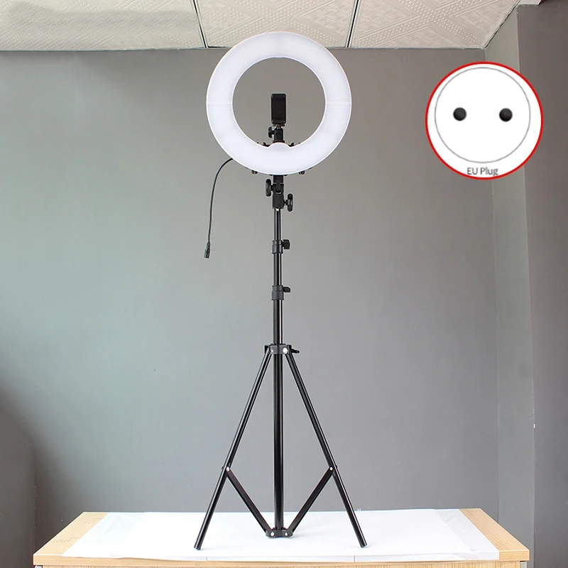14 Inch LED Ring Light with 220CM Tripod 5500K Photography Dimmable Makeup Ring Lamp EU Plug