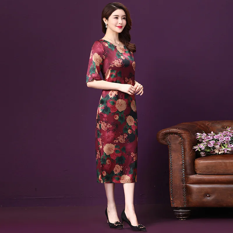 Photo Shoot 2019 Summer Wear New Products Silk Dress Summer Floral WOMEN'S Dress Loose-Fit Slimming