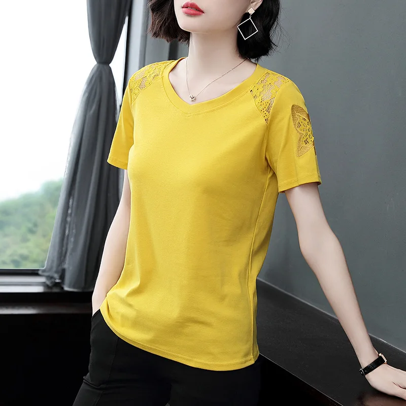 Photo Shoot 2019 New Style T-shirt WOMEN'S Short Sleeved Loose-Fit Women's Middle-aged T-shirt New